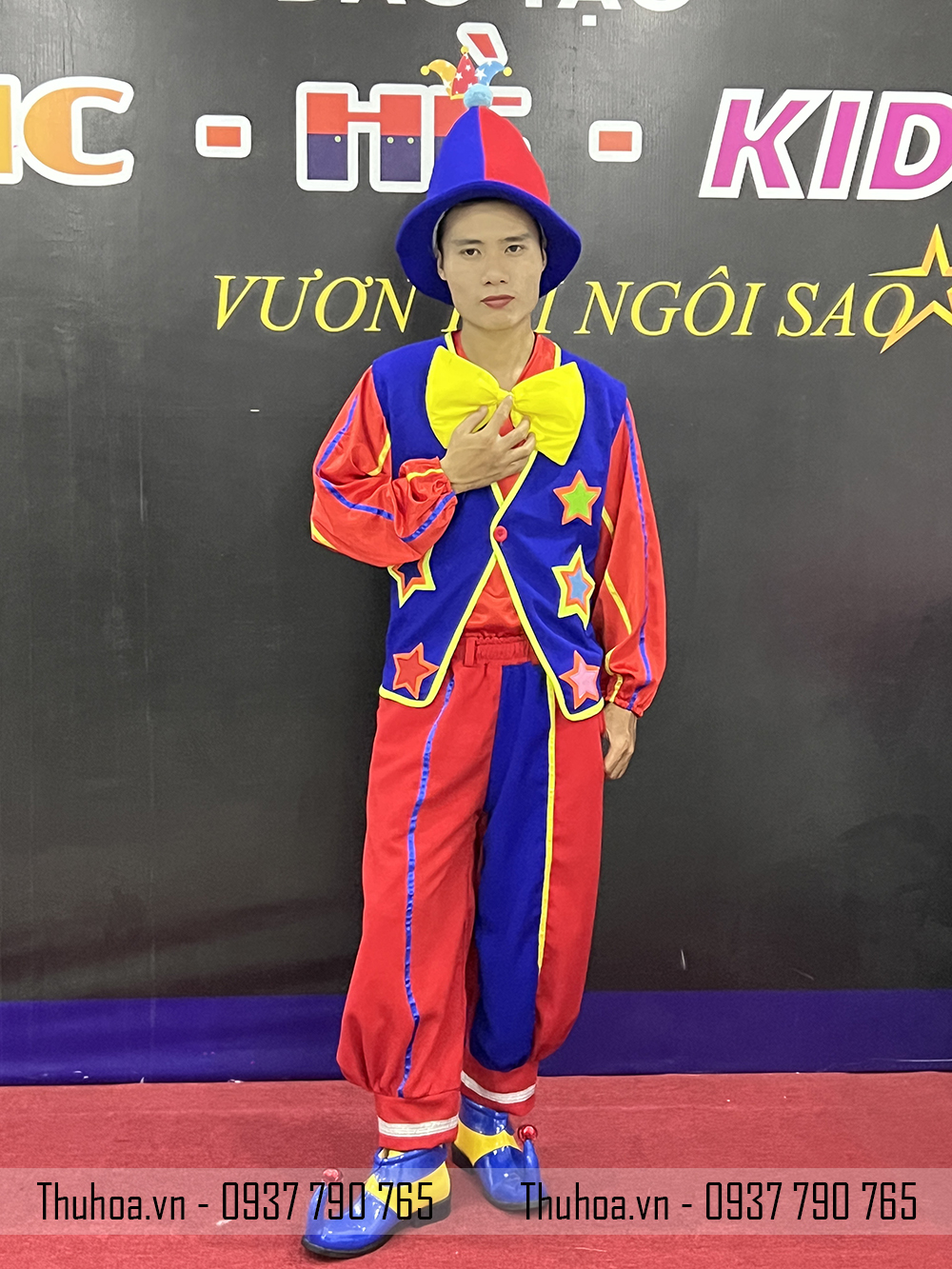 👉 Thuhoa.vn giới thiệu mẫu trang phục chú hề ngôi sao nhiều màu, thiết kế bắt mắt – dễ nhận diện – cực kỳ phù hợp cho các chương trình thiếu nhi, sinh nhật, thôi nôi và sự kiện lễ hội.