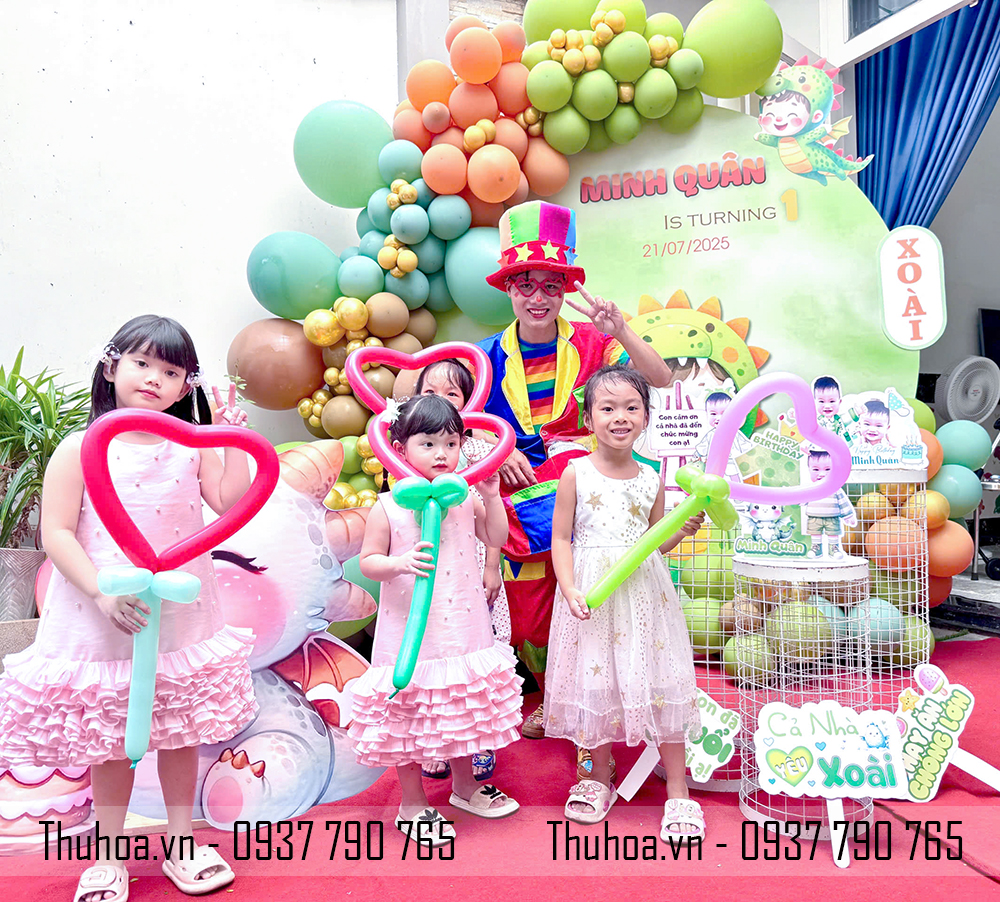 Bên cạnh đó, chú hề hoạt náo, đa năng vui nhộn tạo hình bong bóng cho các bé, mang đến tiếng cười, sự phấn khích và một buổi tiệc sinh nhật/ thôi nôi đáng nhớ hơn bao giờ hết.