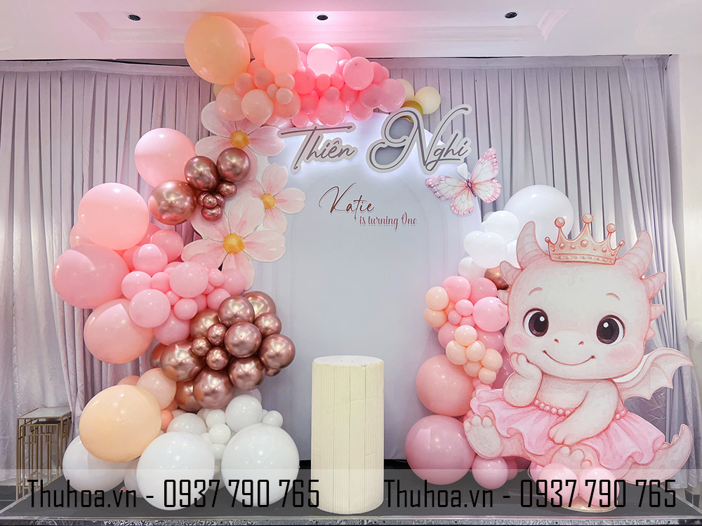 ThuHoa.vn mang đến mẫu trang trí thôi nôi bé trai chủ đề Rồng Con vô cùng đáng yêu, với tông cam – kem – vàng hiện đại. Không gian được decor tỉ mỉ từ backdrop, cụm bóng nghệ thuật, bảng thông tin bé, cô hề Mc hoạt náo, vặn bóng giúp buổi tiệc trở nên sinh động, ấm áp và đầy ý nghĩa.